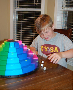 We played the Mountain Goat Scramble using the Mini Mountain and it was a snap to set up and easy to learn. My 5 year old, Emily played with me as her partner but Nicolas, age 8, was ok on his own! I didn’t find it too difficult for him to understand once we got the basics down and he enjoyed the challenge of figuring out what combinations he could come up with using the dice in order to move one of his “goats.” As a teacher, I think the Mini-Mountain or Mega-Mountain would make a great addition to a classroom as part of small group centers. Later, we used the 2-D Playground to play Homing Pigeons. Again, Em needed a little of my help but Nicolas was a solo mathmetician and enjoyed playing. The 2-D playground is perfect when you are limited on space but still want the benefits that the Mini Mountain offers. Both the Mini Mountain and the 2-D playground come with guides giving you all the details on how the games work, and what I liked best was the listing of all the games from basic to most advanced, with a spreadsheet-style checklist of what skills are developed or practiced and you advance in your math skills. Every summer I try to do a little bit with the kids each week to keep their school skills sharp without it feeling like “school.” Zillio’s products are perfect for this! I can’t wait to enjoy playing more Zillio games with my kids.
