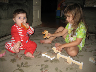 We were lucky enough to receive the Farm Animal Set for review by my two girls. Right off the bat, I was impressed with the quality of the toy. You can definitely tell that they are handmade with love! Lily, my almost 4 year old, grabbed the fences and trees and started to set up the scene. In no time, she had the sheep jumping the fences and horses galloping around the room. She really enjoyed the imaginative play. My youngest daughter, who is only 8 months old, loved watching her sister and occassionally stole a wooden animal to munch on! LOL!I would definitely recommend this toy for any age or gender this Christmas!