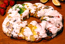 King’s Day is celebrated as the date the gift-bearing Magi visited the baby Jesus. The King Cake is baked in honor of the three kings and the baby (plastic, porcelain or gold) placed inside the cake symbolizes the baby Jesus. Originally, these oval cakes were a simple ring of dough with a small amount of decoration. Today’s King Cakes are much more festive! After the rich Danish dough is braided and baked, the “baby” is inserted. The top of the ring or oval cake is then covered with delicious sugar toppings in the traditional Mardi Gras colors: purple, green and gold.