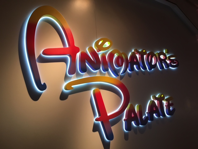 If you are lucky enough to dine in Animator’s Palette more than once on your cruise, you get to become an official Animator! You create a character and through the magic of Disney, your creation comes to life on the walls set to some pretty catchy music. This was such a fun experience!