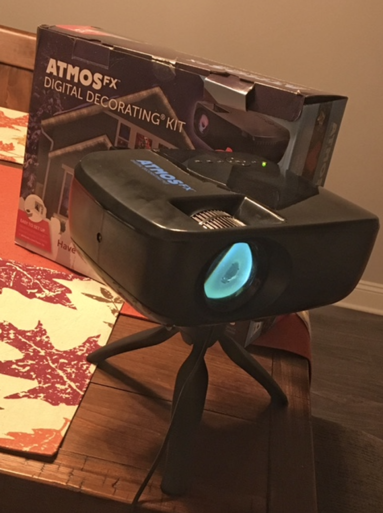 I couldn’t describe it better. Atmos FX is so much more than traditional decor. It’s an experience. To make the holidays come to life, all you need is the Digital Decorating Kit which includes a projector, mounting tripod, remote control, and AtmosFX Standard Window Projection Material. The kit comes with an SD card pre-loaded with 14 AtmosFX Digital Decorations: 8 Halloween-themed scenes, and 6 seasonal scenes focusing on Christmas and other holidays.